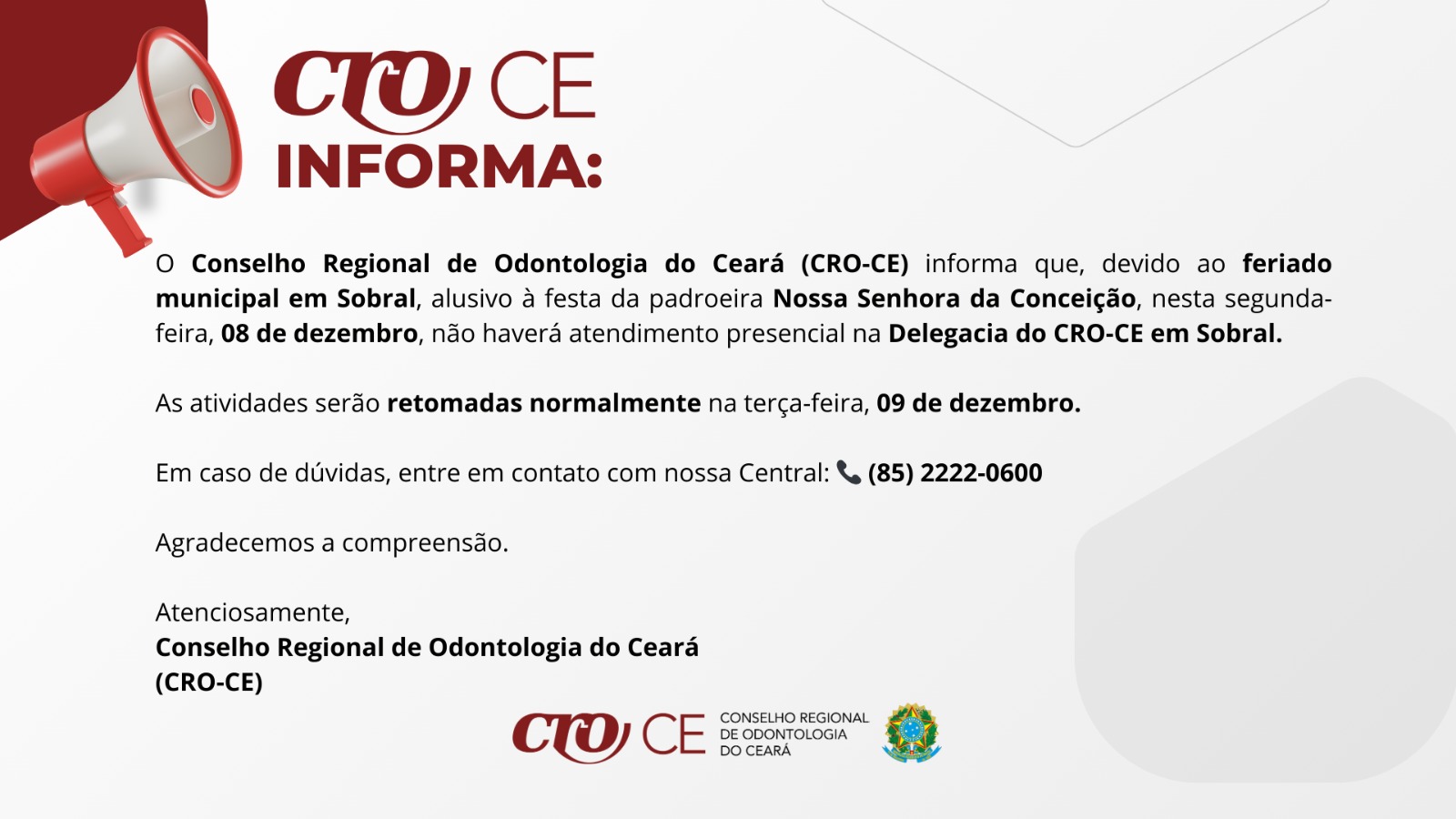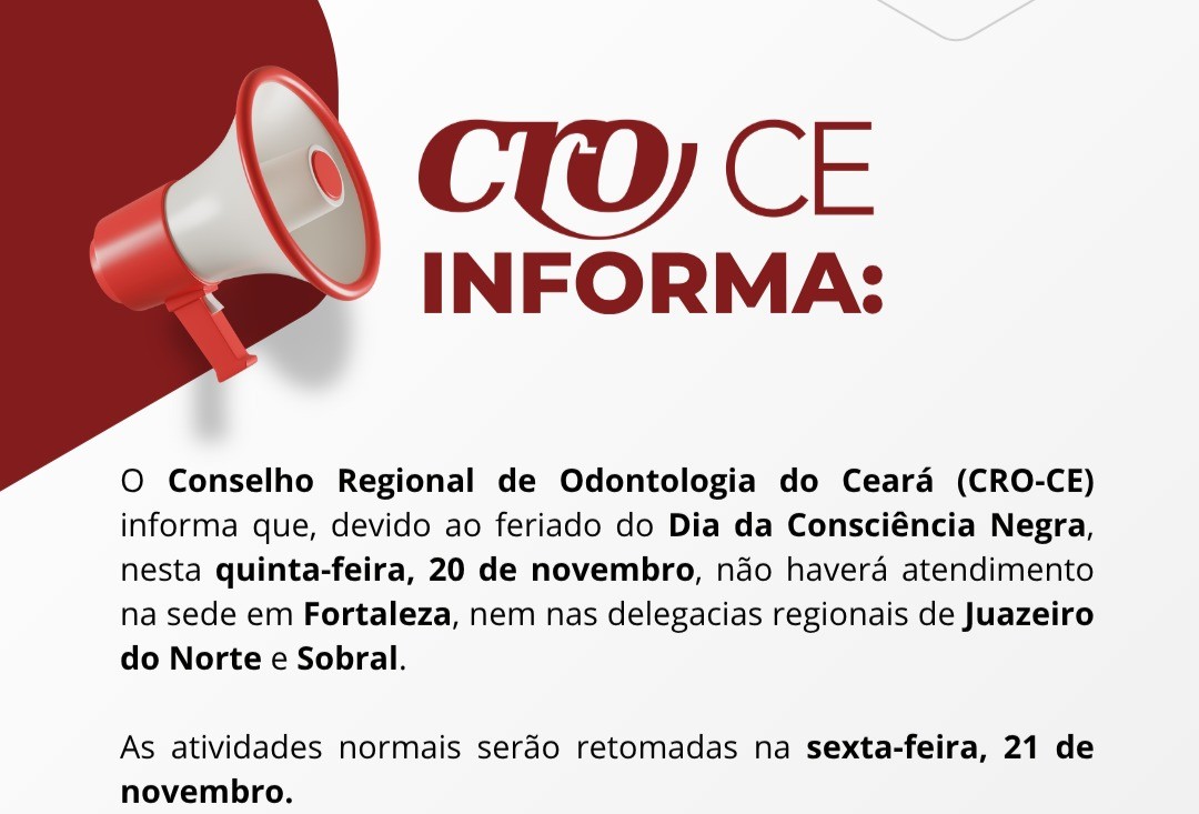 Informe: sem atendimento na sede e delegacias regionais do CRO-CE nesta quinta-feira(20)