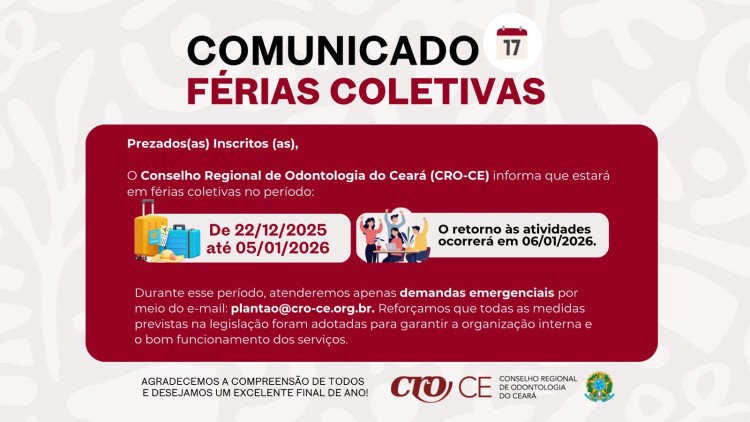 INFORME: férias coletivas no período de 22/dez até 05/jan de 2026