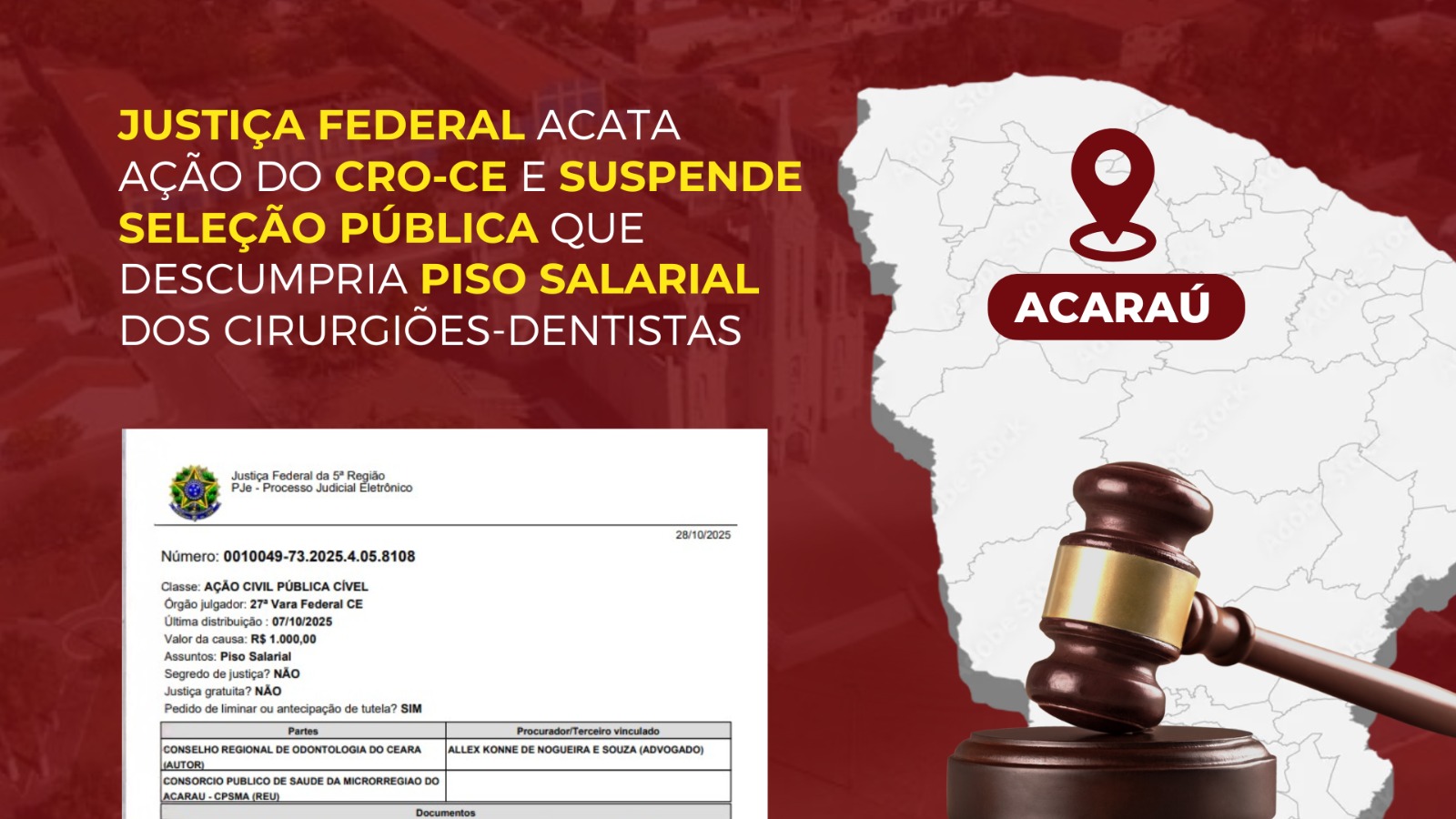 Justiça Federal determina suspensão de seleção pública e exige cumprimento do piso salarial dos cirurgiões-dentistas no Ceará